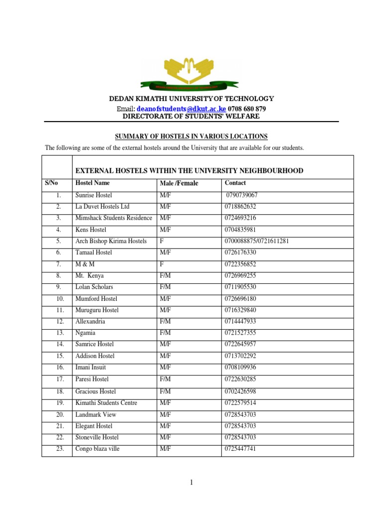 Dedan Kimathi University Hostels - Get all information about programmes and courses offered at dedan kimathi university of technology (dekut) for undergraduate, postgraduate.